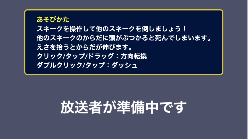 放送者用ページで 参加者受付を開始する ボタンを押した後、 参加者用ページで 参加する ボタンを押して募集が完了すると、 放送者と参加者のそれぞれのページでマルチプレイゲームが開始する。